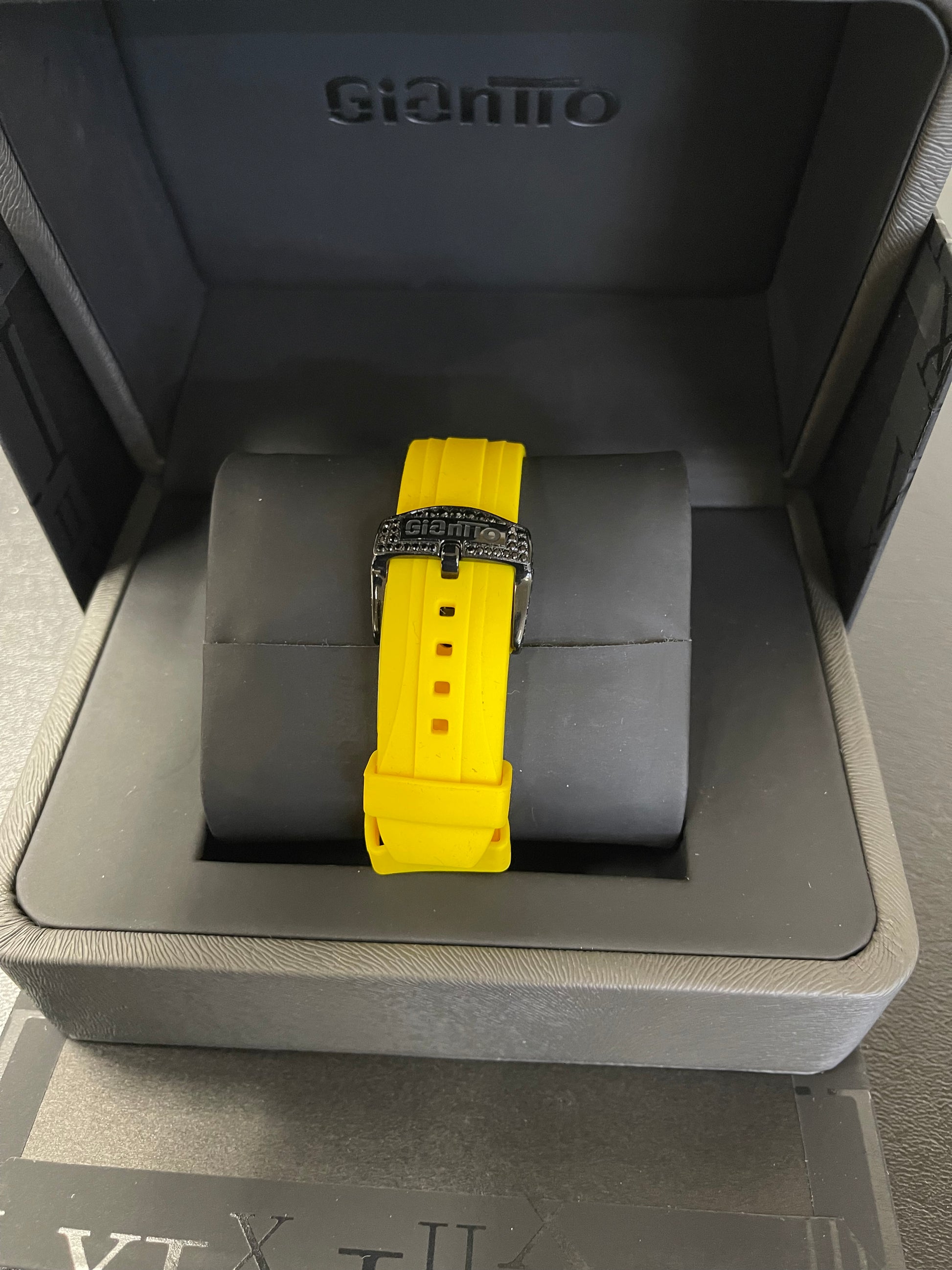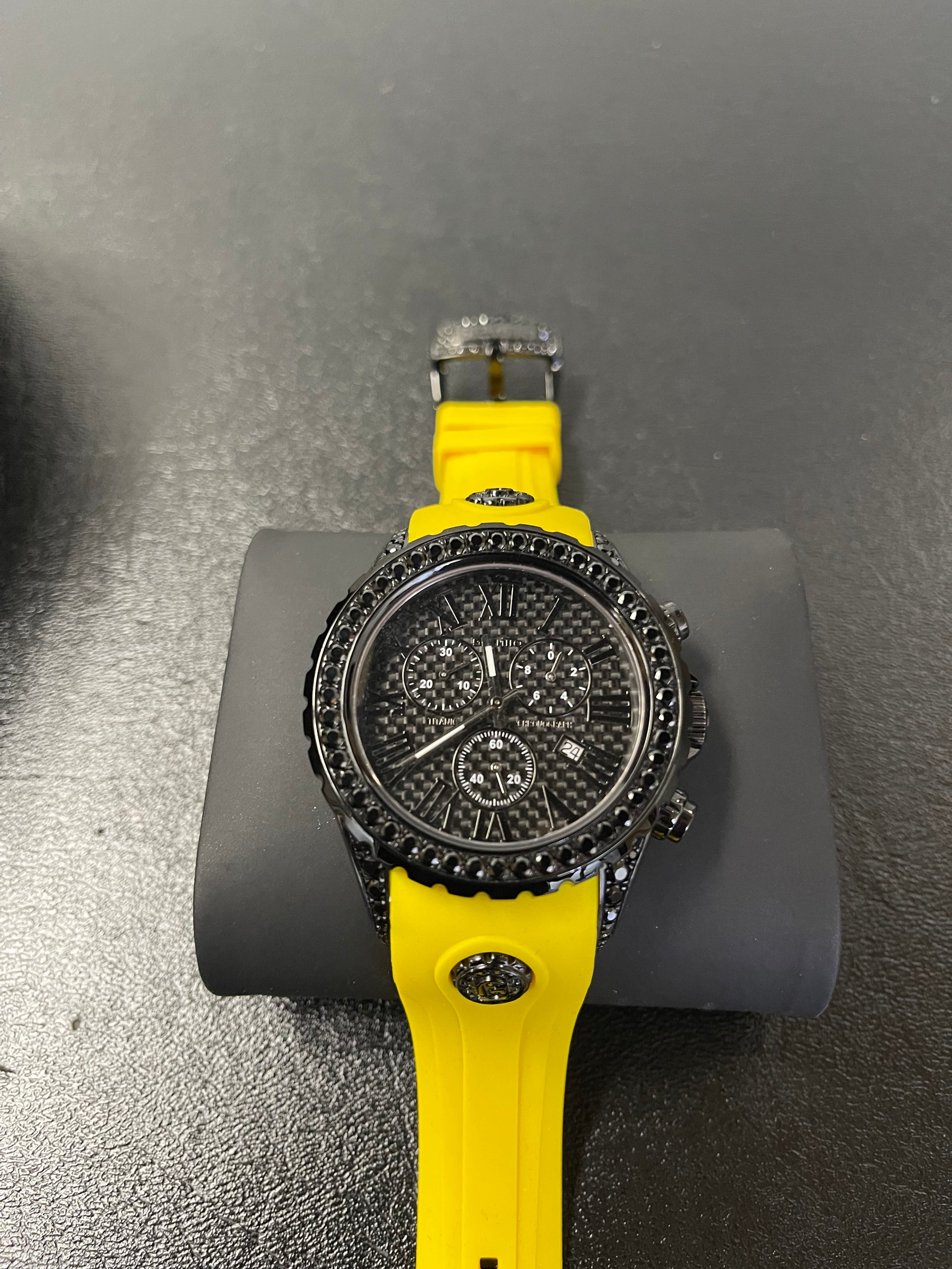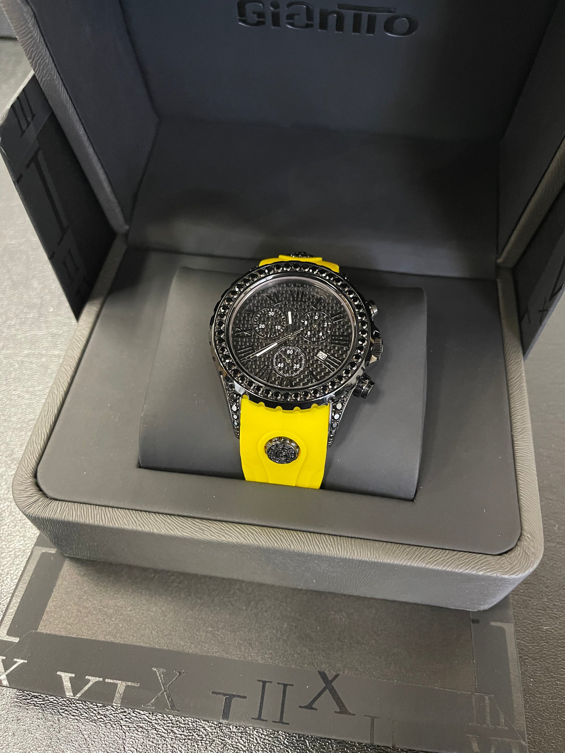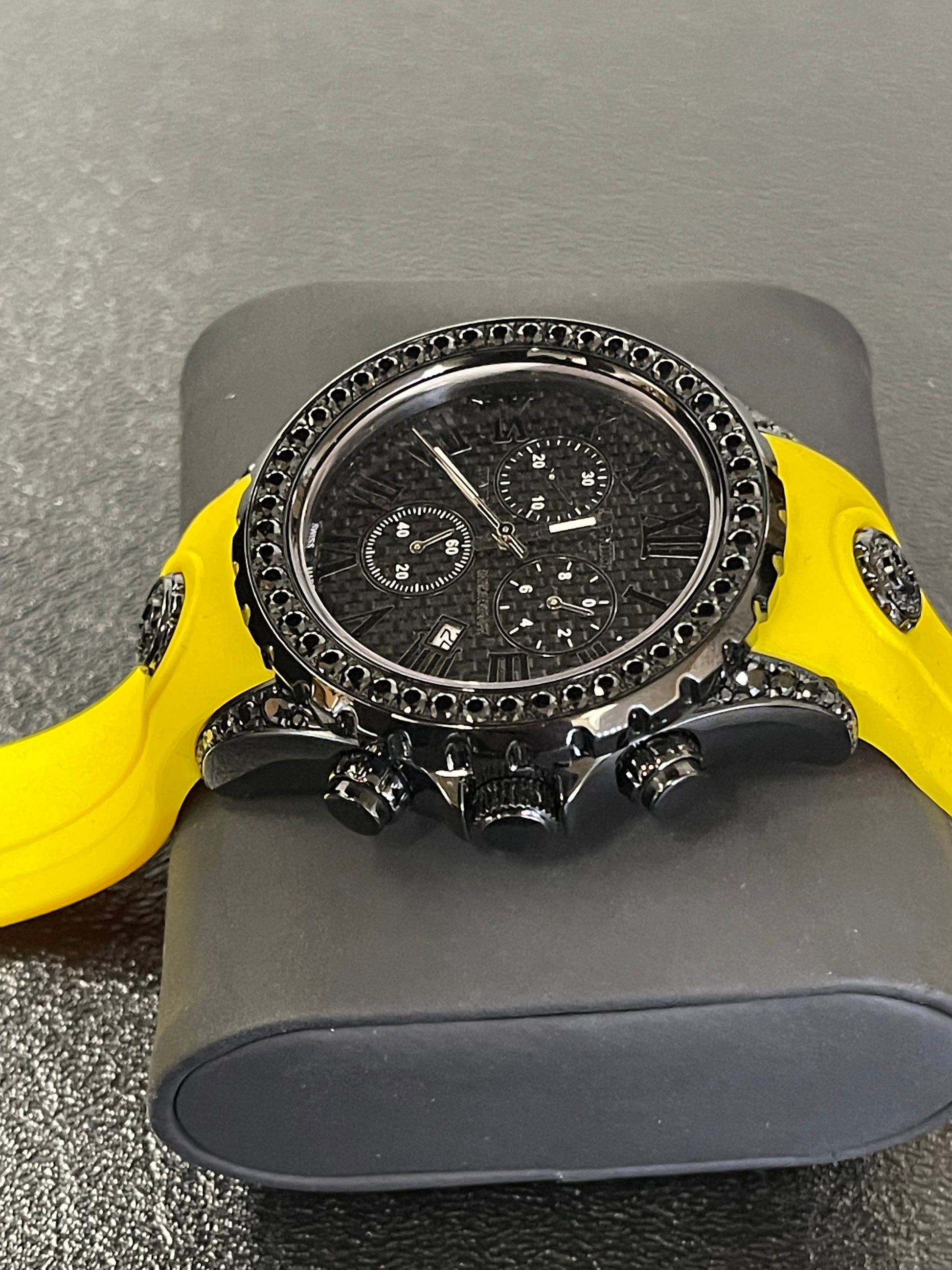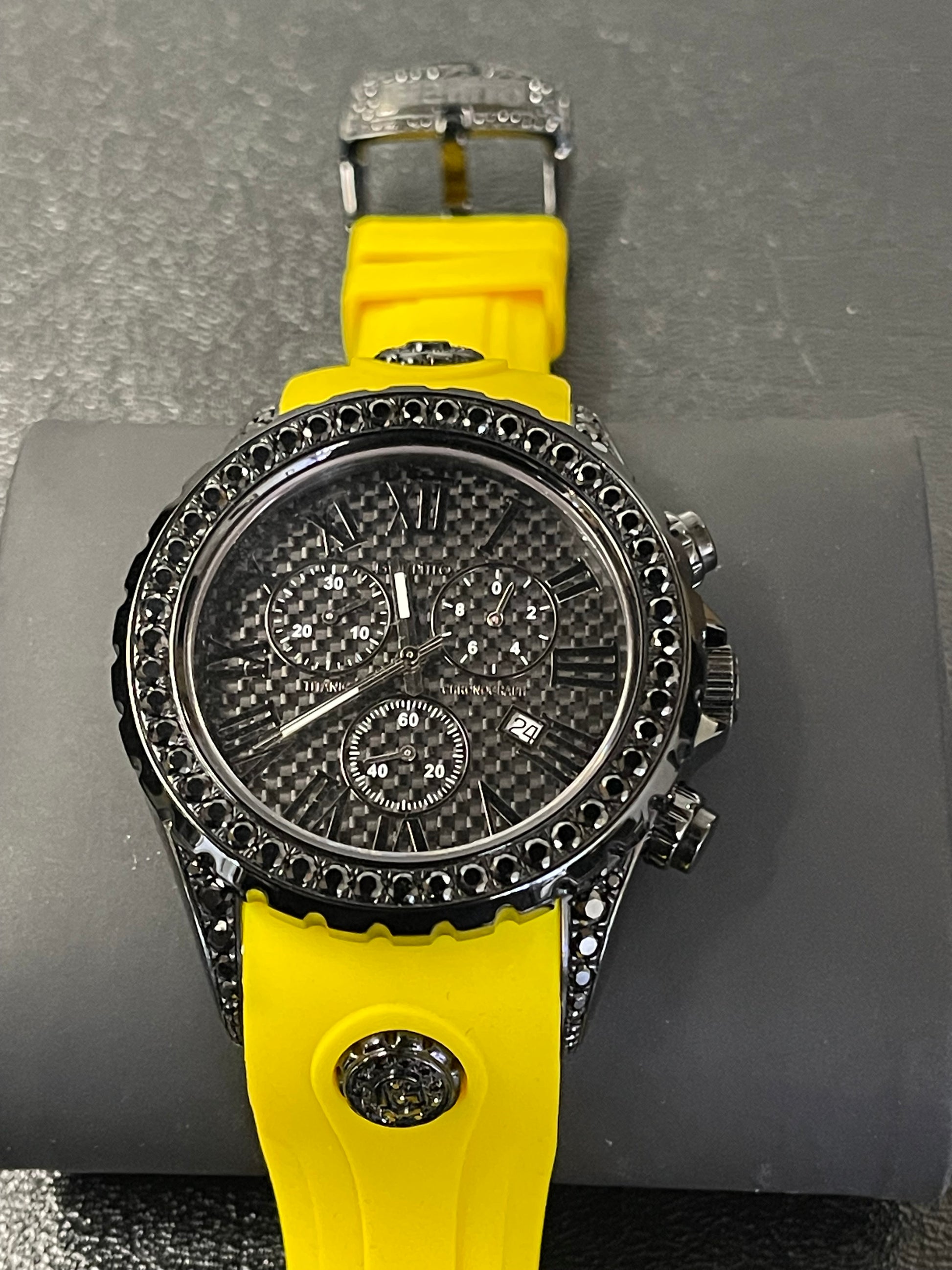 Titanic III Black CARBON FIBER DIAL Swiss ETA quartz Chronograph. Hand set black ONYX bezel and Lugs with yellow silicone band. 46mm stainless steel case Water resistant up to 5ATM.Ships worldwide from United States