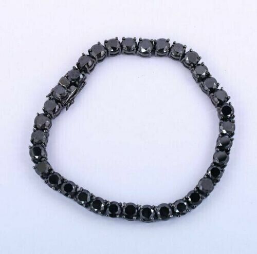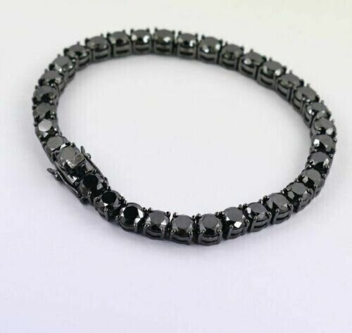This iconic diamond tennis bracelet adds sophistication and elegance to any outfit, whatever the occasion. The black onyx stones are hand set on sterling silver that is plated in black gold.