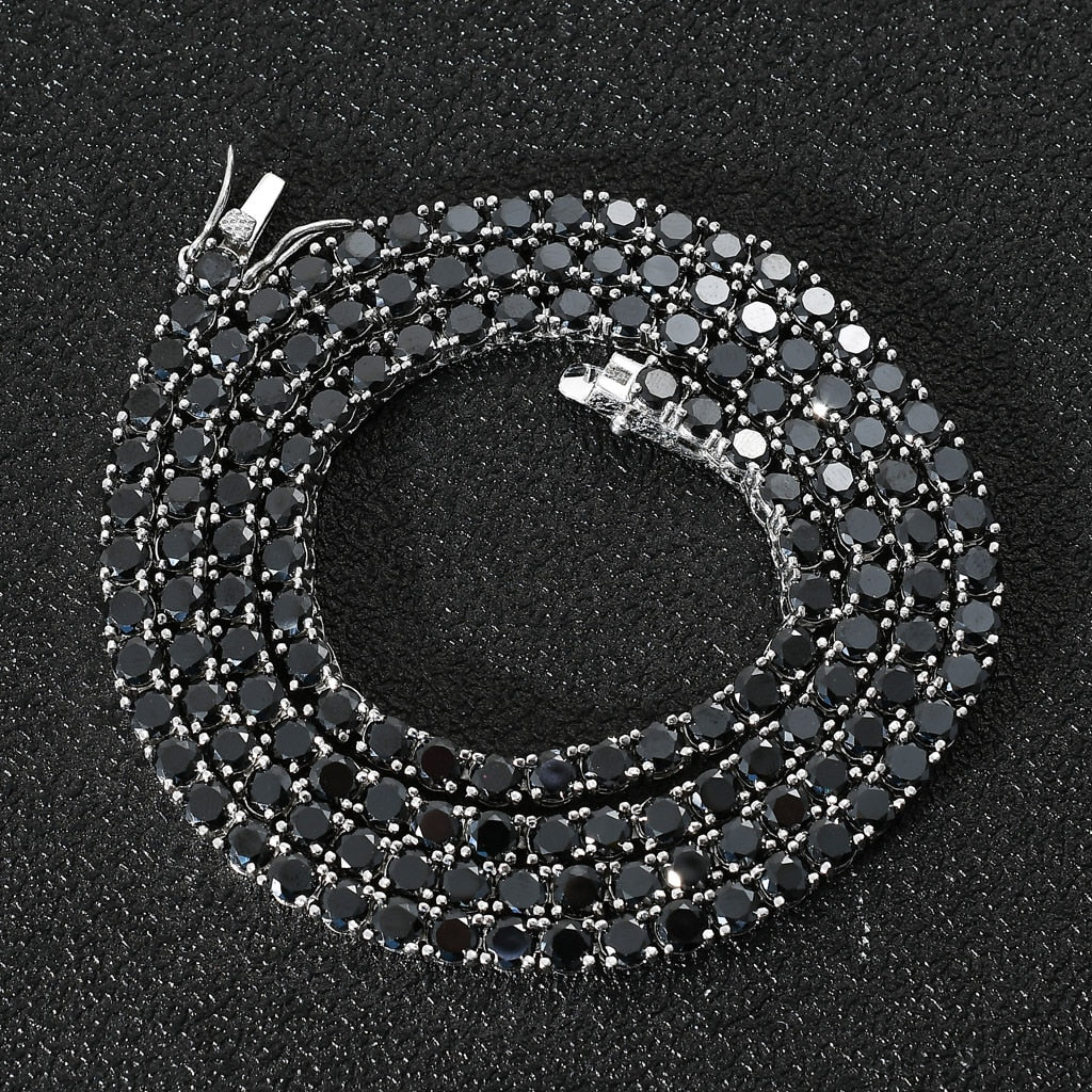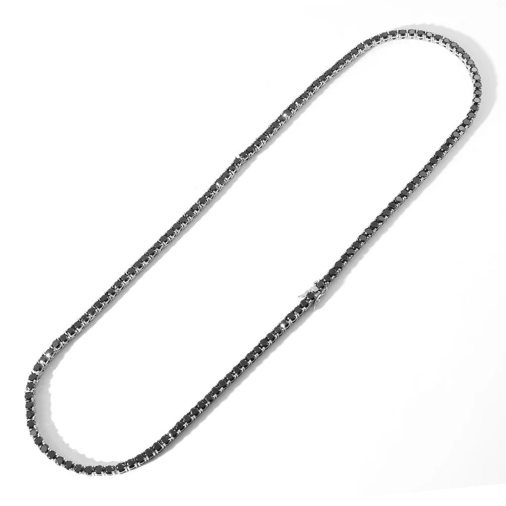 Built to pop, shine and color your wardrobe, the Black Stones Tennis Chain adds a new variant to the ever-popular tennis chains that dominate streetwear. Each piece uses 4mm CZ stones to provide an eye-catching appearance for men.