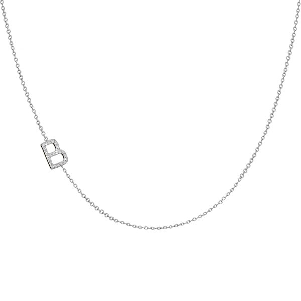14k solid gold pave diamond initial on a dainty chain necklace with the length of your choice, available in 14k white, yellow and rose gold.