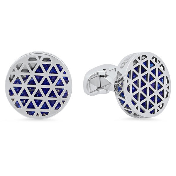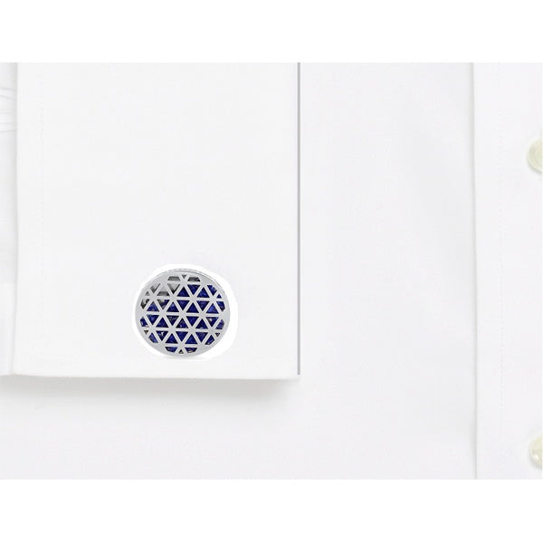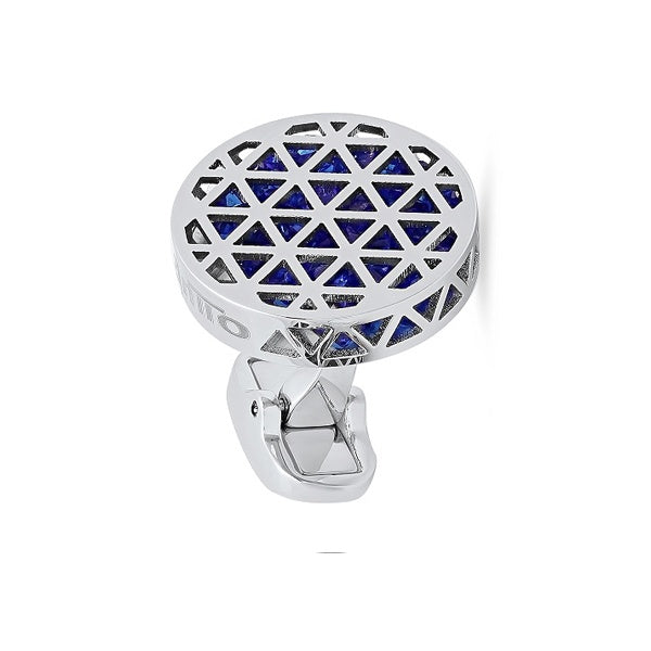 Stainless Steel cage laser cut with loose blue stones inside- engraved flip toggle backing
