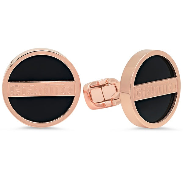 Stainless Steel / black onyx inlayed polished GIANTTO bar logo smooth edge engraved flip toggle backingPrimary color: Rose gold