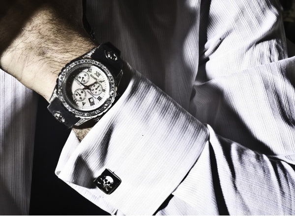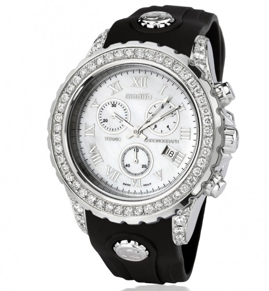 Titanic III white mother of pearl dial Swiss ETA quartz Chronograph. Hand set diamond bezel and Lugs with black silicone band. 46mm stainless steel case Water resistant up to 5ATM.Ships worldwide from United States