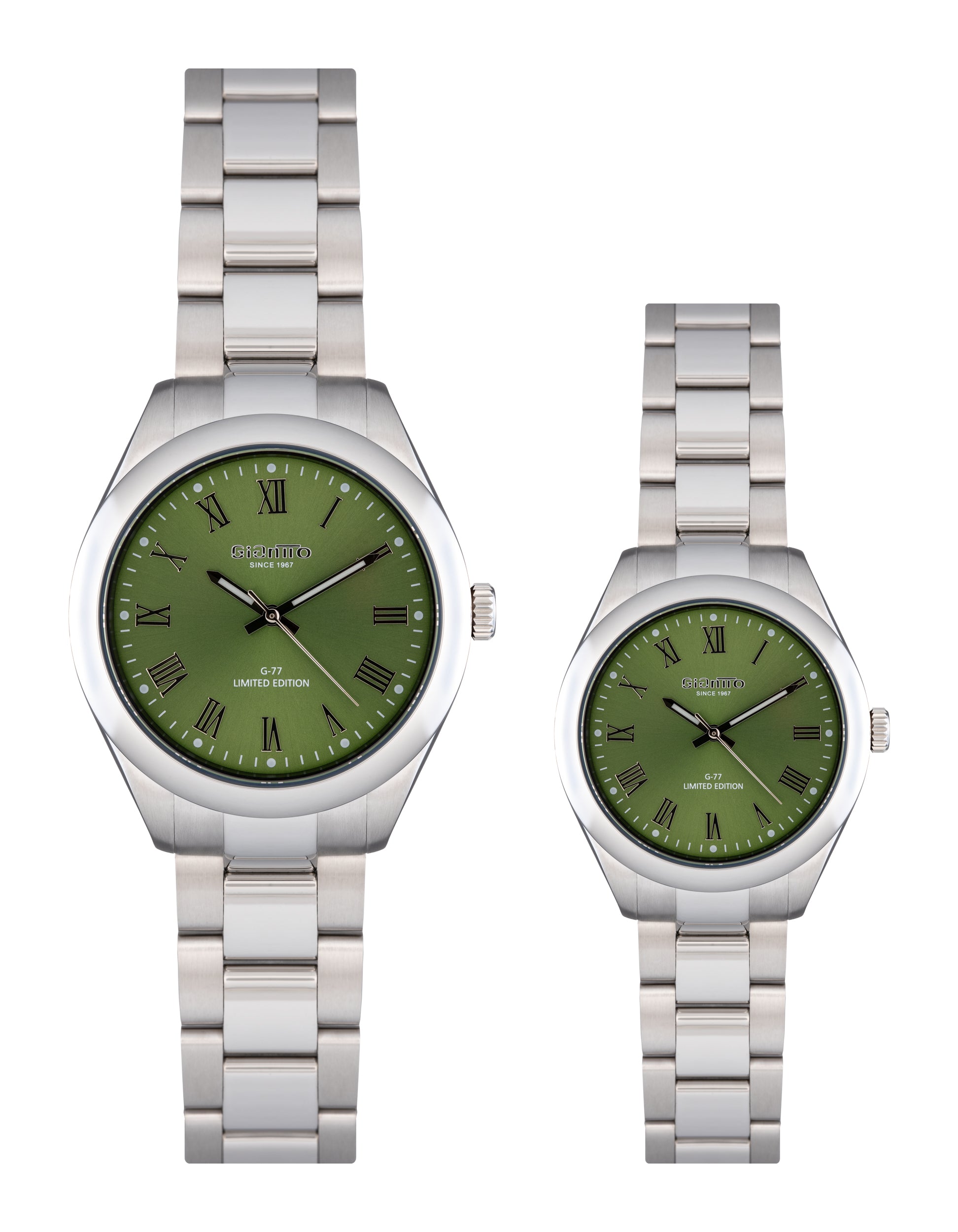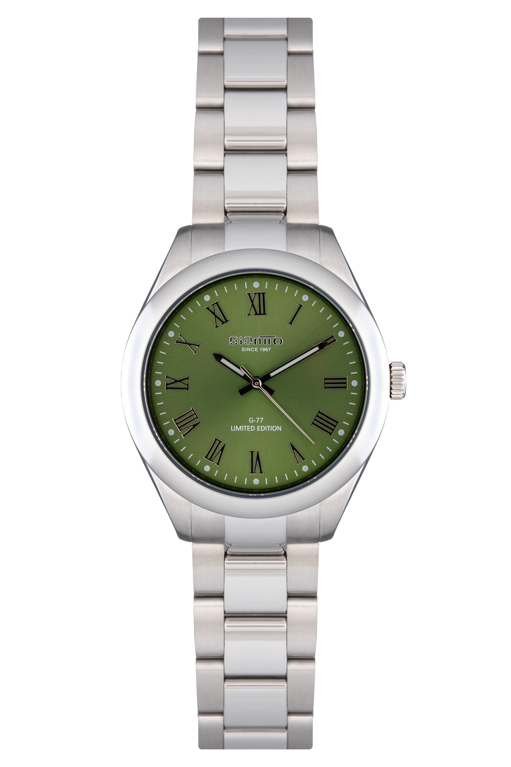 LIMITED EDITION G77 QUARTZ COLORFUL ROMAN NUMERAL DIAL OPTIONS STAINLESS STEEL 41MM & 31MM ARMY GREEN DIAL |