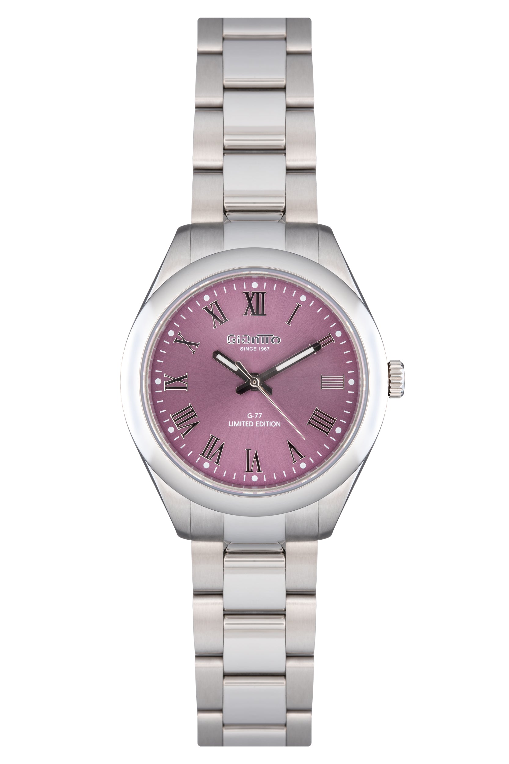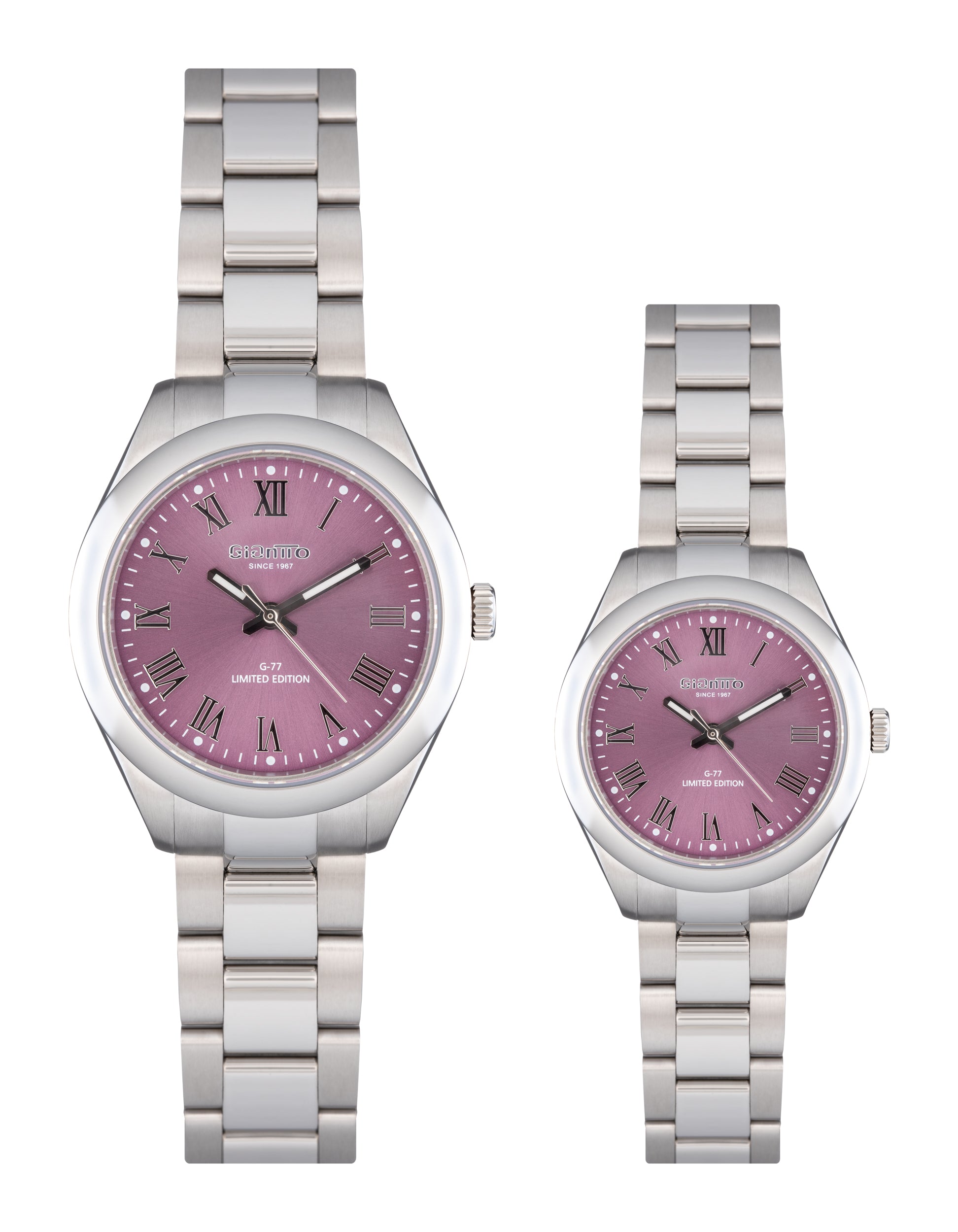 LIMITED EDITION G77 QUARTZ SWISS COLORFUL ROMAN NUMERAL DIAL OPTIONS STAINLESS STEEL 41 MM / 31MM PURPLE DIAL |