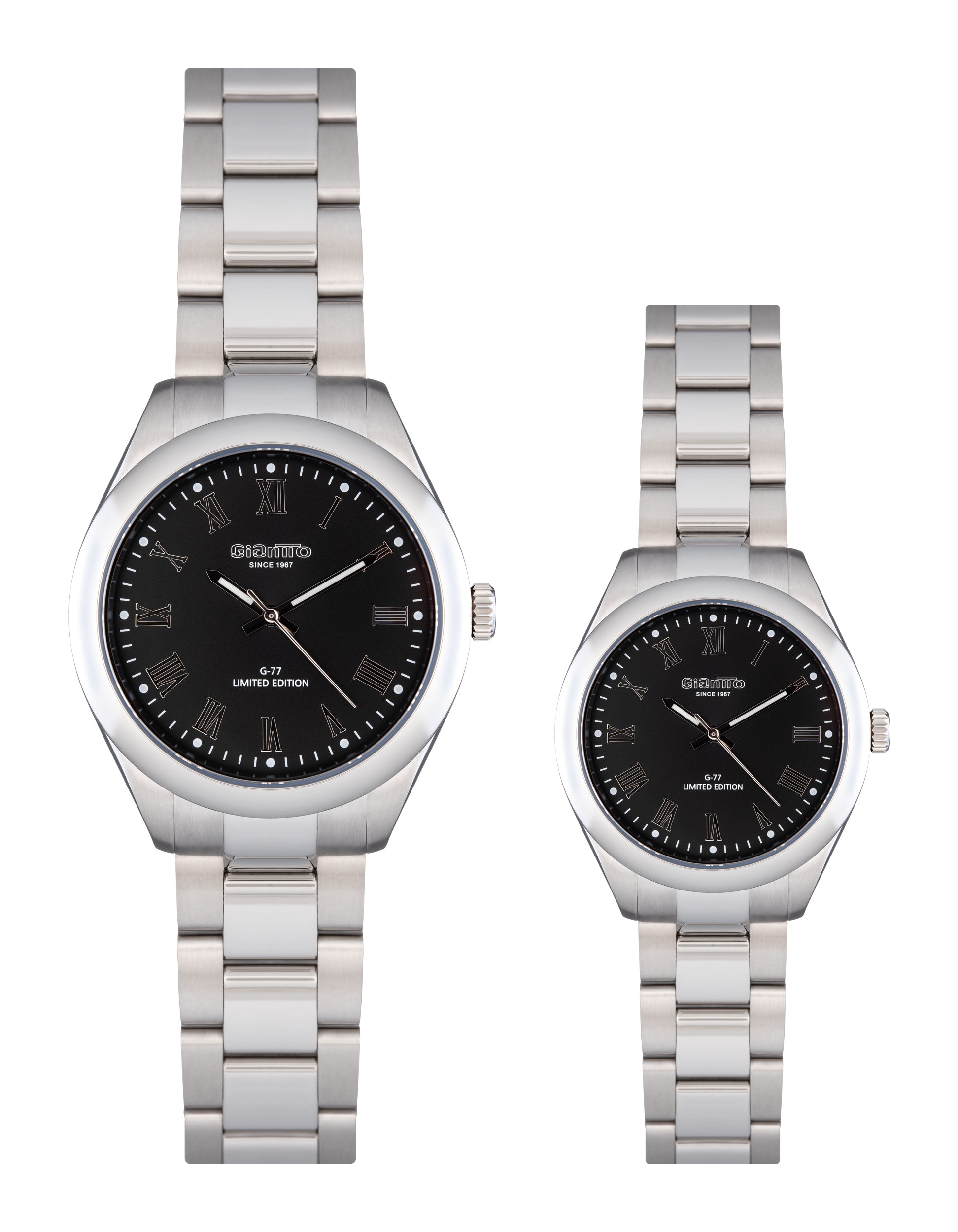 G77BK41SS LIMITED EDITION G77 QUARTZ SWISS COLORFUL ROMAN NUMERAL DIAL OPTIONS STAINLESS STEEL 41MM BLACK DIAL |