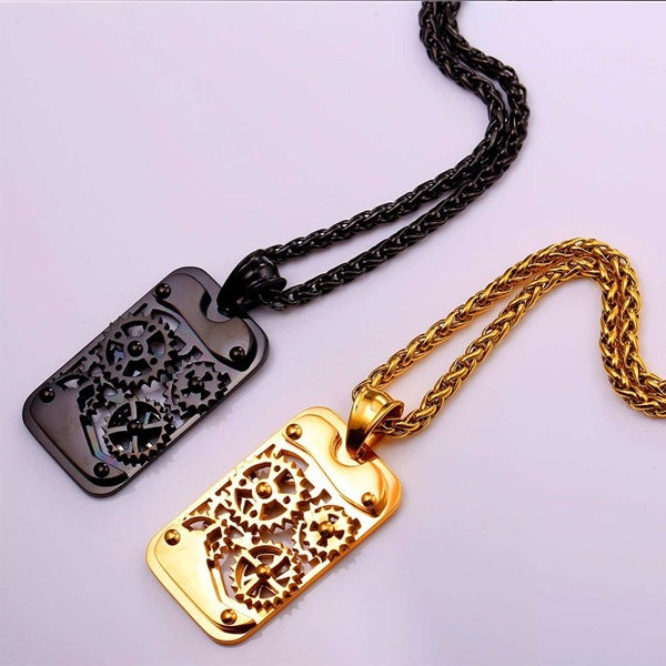 GIANTTO LEGACY COLLECTION BLACK STEEL WATCH GEAR DOG TAG PENDANT & CHAIN