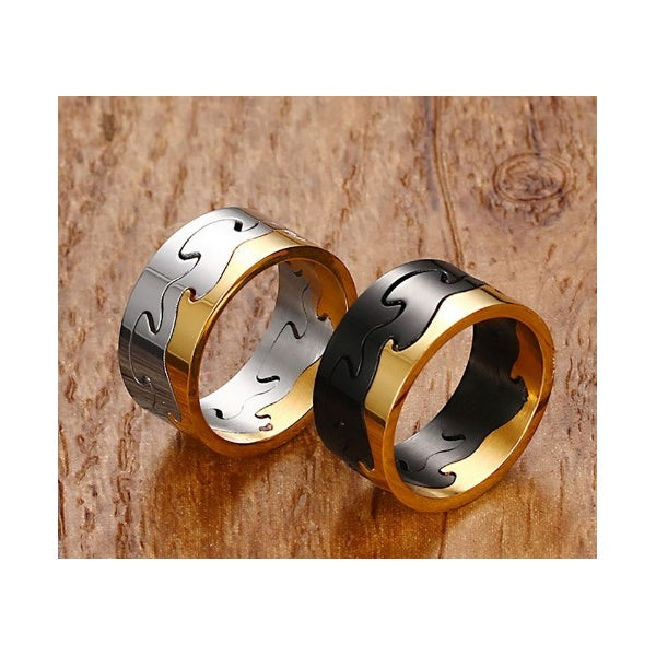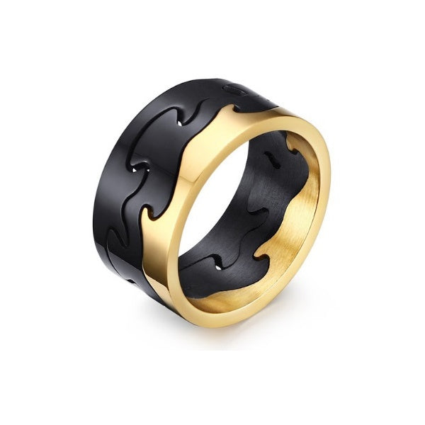 GIANTTO LEGACY COLLECTION BLACK &YELLOW STEEL 2TONE PUZZLE RING