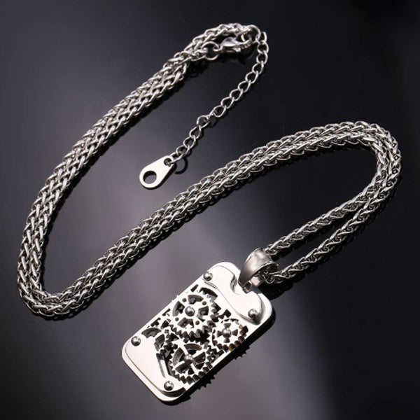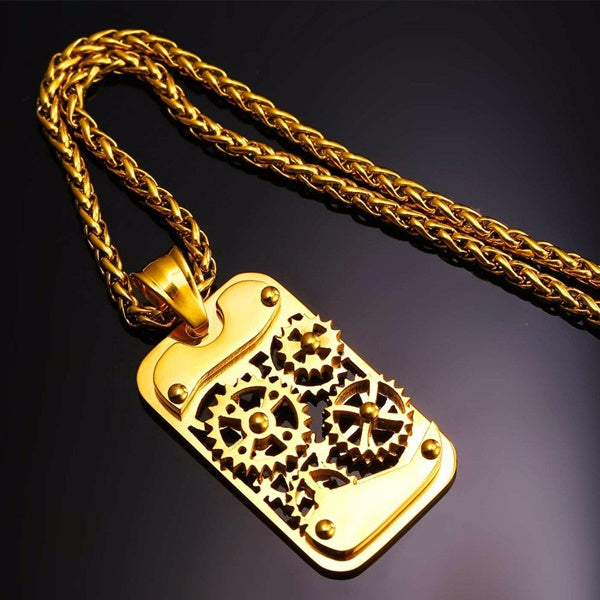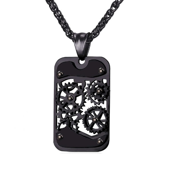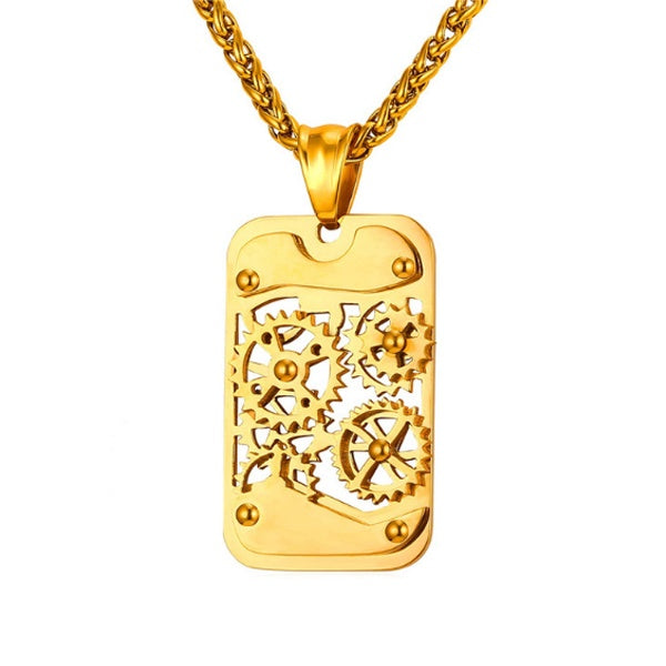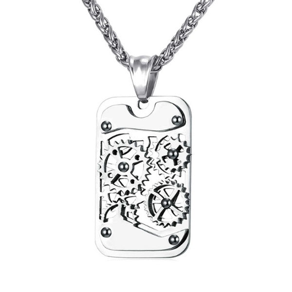 GIANTTO LEGACY COLLECTION STEEL WATCH GEAR DOG TAG PENDANT & CHAIN