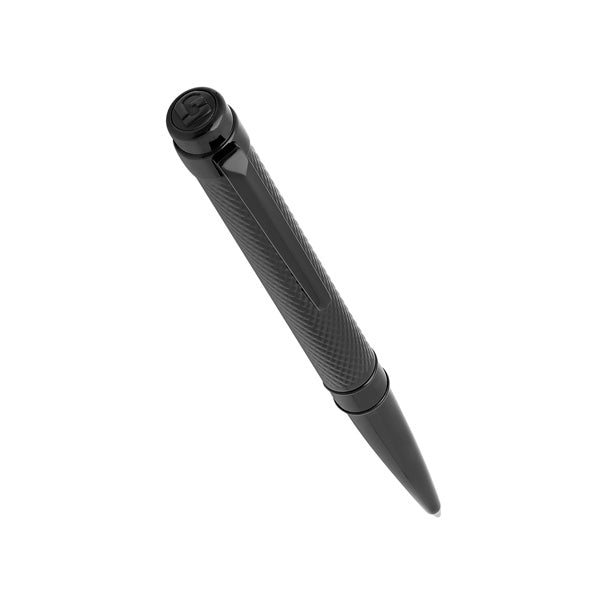 PEN: Stainless Steel polished finish black IP with engraved tube pattern, twist rollerball Schmidt ink. Signature G logo top