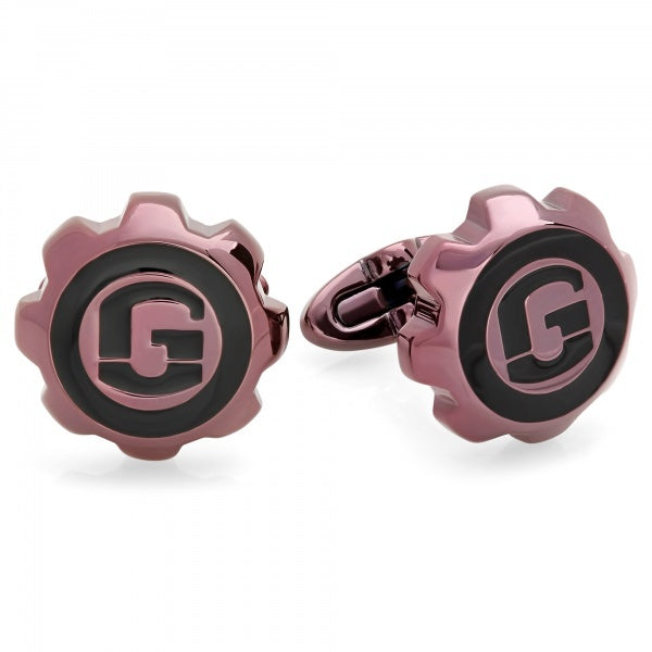 CUFFLINKS: Stainless Steel rose gold IP polished finish G logo monogram print etched centers engraved flip toggle backing