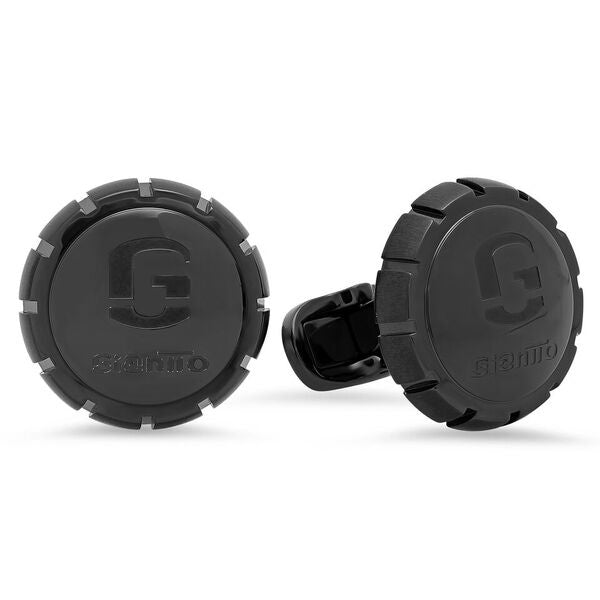 CUFFLINKS: Stainless Steel Matte/polished finish black IP Retrograde notched edge semi polished G logo centers engraved flip toggle backing