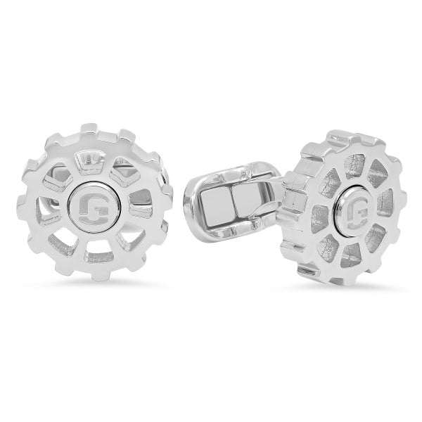PEN: Stainless Steel polished finish black IP 2 tone with engraved tube pattern, twist rollerball Schmidt ink. Signature G logo patent wheel spinner on clip with rivets.