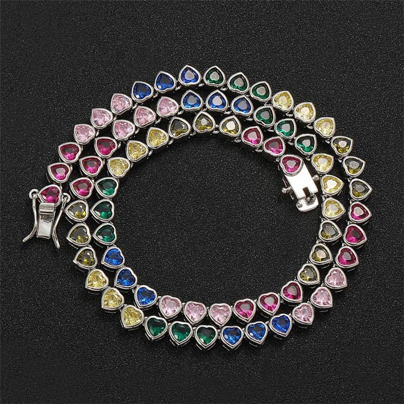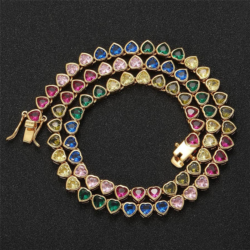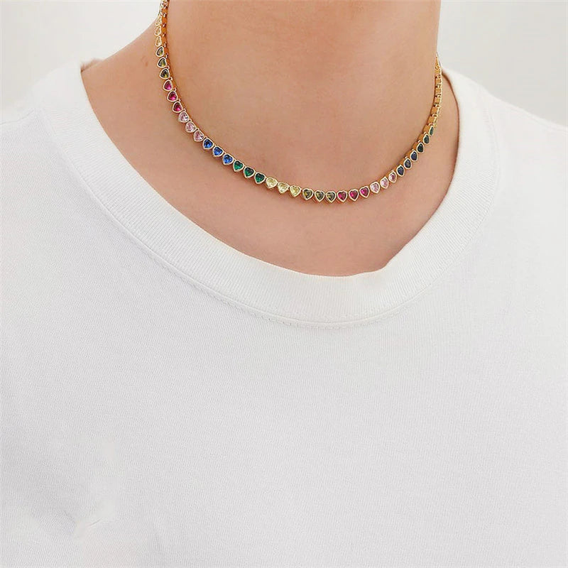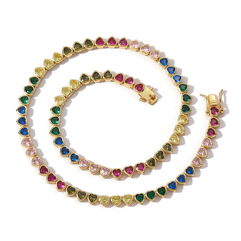 MULTICOLOR BEZEL SET HEART TENNIS NECKLACE