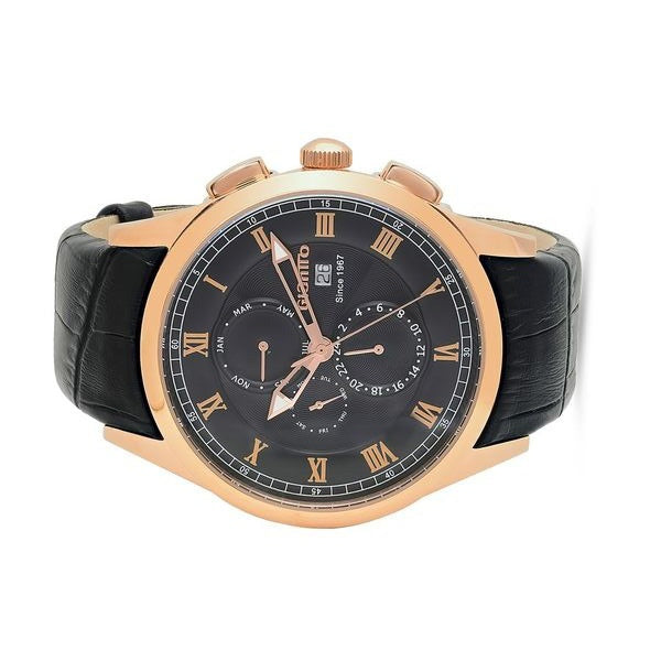Stainless steel case rose gold IPBlack sunray dial Stainless steel roman numeral hour markers rose gold IP