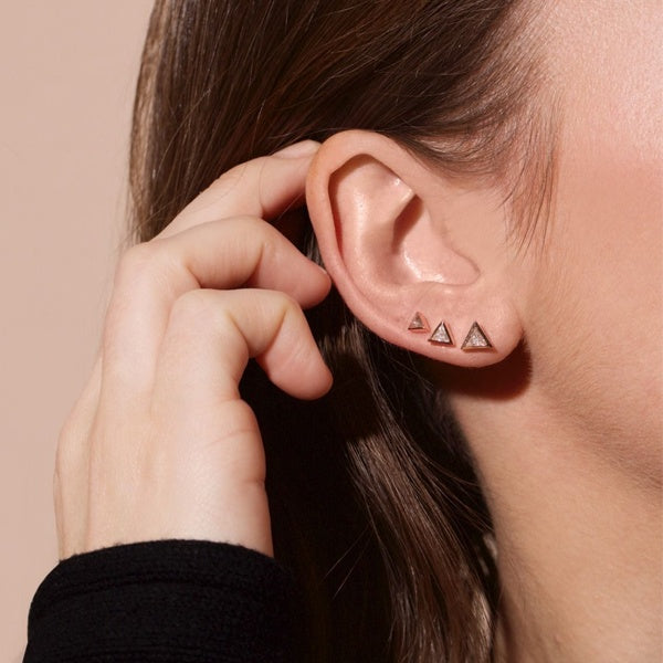 Trillion diamond earrings with two 0.10 carat trillion diamonds in 14k gold